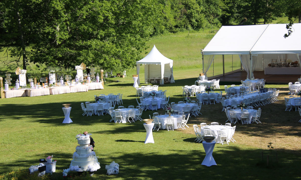 Château Siaurac peut recevoir sous tente, dans l’orangerie, dans le parc, dans le chateau, selon le nombre de convives.