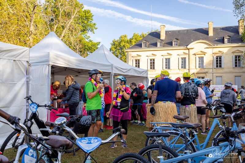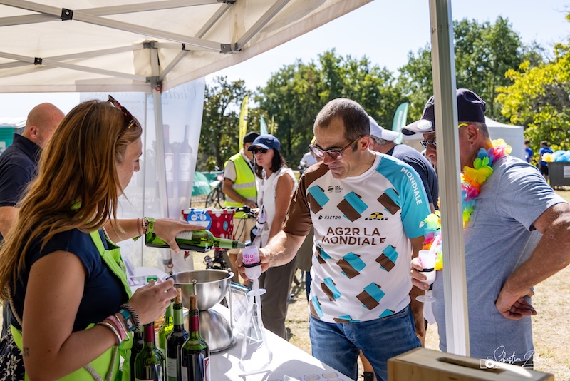 Les 2 100 cyclistes ont pu parcourir le vignoble qui nous entoure, et ont eu la chance de pouvoir traverser de belles propriétés amies et voisines à quelques encablures de chez nous et profiter des offres de chacune d’entre elles, de déguster les vins produits par nos équipes passionnées et passionnantes de notre Appellation Lalande de Pomerol avec des propriétés de Néac.