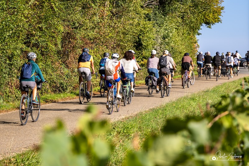 Tous nos confrères et consoeurs ont eu à coeur de prendre le temps d’échanger avec les participant(e)s à l’aube des vendanges pour certaines propriétés… De notre côté, nous avons combiné Vélotour et les vendanges car nous avons commencé le mardi 2 septembre avec le ramassage pour produire notre rosé.